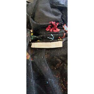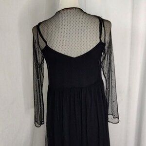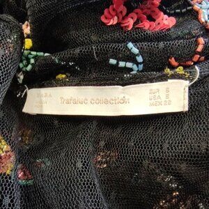 ZARA Dress S Black Floral Beads and Sequins Mesh Sheer Midi Long Sleeve Plumeti