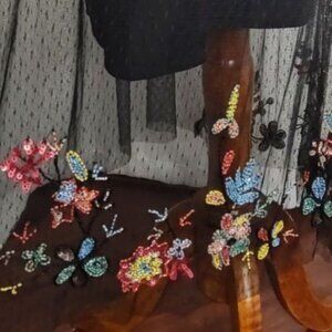 Romantic Goth, Beaded, Sheer, Mesh, Embroidered, Party, Dinner Date.