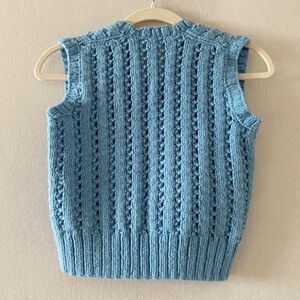 Adorable vintage handmade baby blue knit sweater vest tank top in excellent condition. Made with acrylic yarn. No rips, stains, or tears. Fits like an XS or S. Ships from a smoke free, pet friendly home.