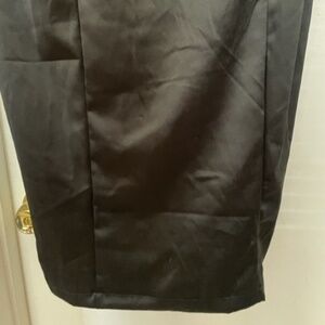 Zip closure in back. Slit at back hem. 95% polyester, 5% spandex. Lining is polyester. Hand or machine wash. Made in the USA.