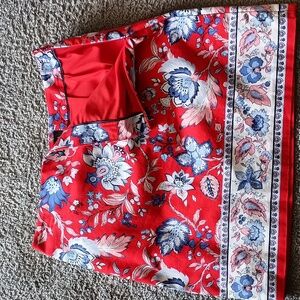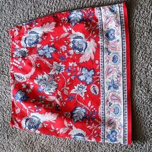 Women’s Talbots Red Climbing Floral with Border Print A-Line Skirt. In red with blue floral design. Size 10. It is brand new without tag