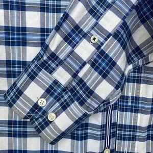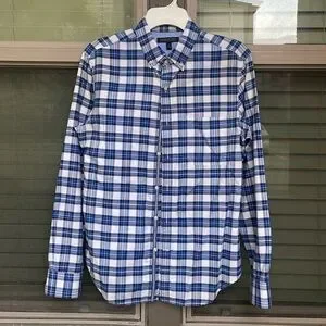 Banana Republic dress shirt SMALL Oxford tailored slim fit blue plaid