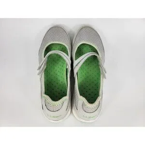 LL Bean Two Strap Mary Jane Shoes Sneakers Womens Size 8 Gray White Green 260976.