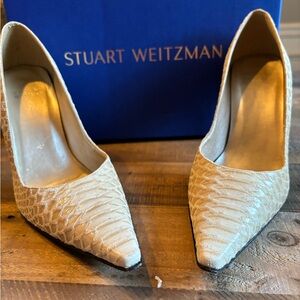 Beautiful 3.5 inch heels with cream and gold shimmer snakeskin design.
