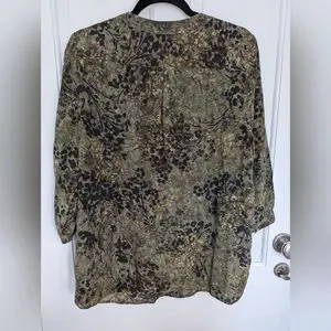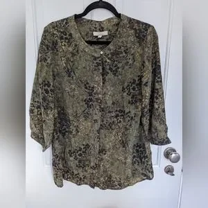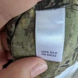 Banana Republic Womens 14 100% silk button blouse top green flower print