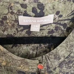 Banana Republic 100% silk button blouse top size 14 green flower print workwear