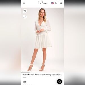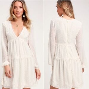 NWT Lulus | White Swiss Dot Long Sleeve Dress | Size Small