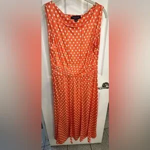 Orange with white dots sleeveless dress great for summer vibe, ladies size Medium