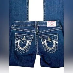 2008 Women’s True Religion Becky Rainbow Lovestruck Dark Denim Jeans size 26x34