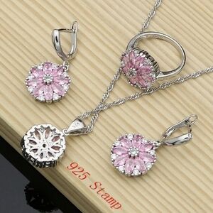 Sterling Silver Flower Wedding Jewelry Set for Women, Bridal,925STAMPED,Gift