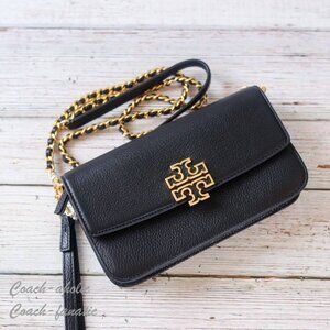 NWT Tory Burch Britten Chain Wallet with Wristlet Leather Crossbody in Black