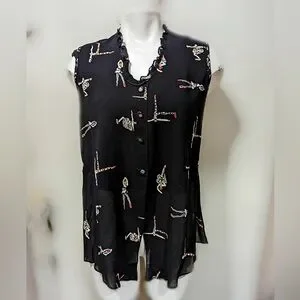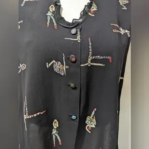 100% Rayon, Artsy and abstract vintage top by Dorothy Schoelen. Made in USA. This blouse is perfect for people with a more creative style or lovers of vintage clothing! The design is very unique and sure to draw attention 🎨