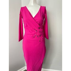 ONLY AT SAKS. Chiara Boni La Petite Robe's Carera dress flaunts a long-sleeve wrap design and a floral sequin accent at the side.