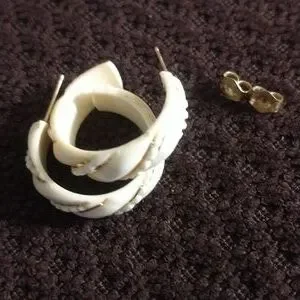Genuine Ivory & 14 karat gold hoop earrings w/ gold ribboning, posts & backings