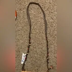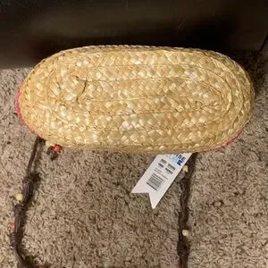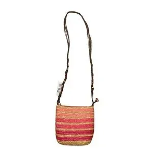 NWT Cruise Club pink/tan striped summer straw crossbody with corded/beaded strap