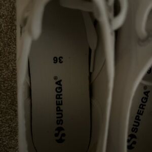 Superga platform sneakers. Worn only a couple times, just not a big fan of how they fit me. A little dirty but would be super easy to clean. Size 36 converts to 5.5 women’s I believe but I am a 6-6.5 usually so do with that what you will.