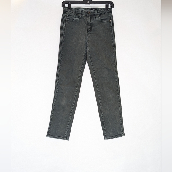 AG Adriano Goldschmied Isabelle High Rise Straight Crop Pintucked Lt Green 25R