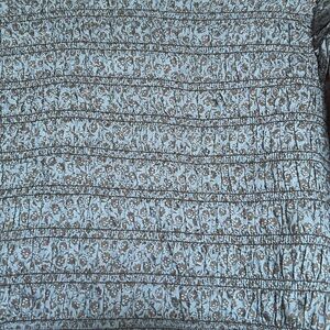 Super cute for Fall! Smocked mini dress with blue and black floral print. Lightweight cotton, not lined but the fabric is not see through at all!