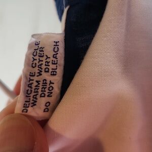 This dress has a solid blue body, red floral sleeves and white collar and cuffs. some yellow staining on the collar, and one back button is missing. Otherwise, in excellent vintage condition.