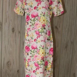 Tom's Ware Dress Casual Floral Print Pink Green New Bodycon Midi M - L Large EUC