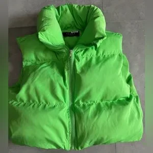 Akira cropped puffer vest in lime green. Similar style to first picture shown. Zips in front. Size medium.