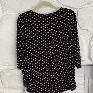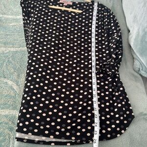 Philosophy Woman 1X soft knit black gray cream polka dot curve hem stretchy top