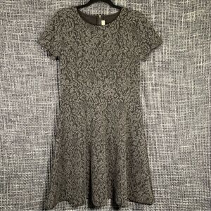 LOFT Black & Gray Embossed Floral Skater Dress Size 6 #895