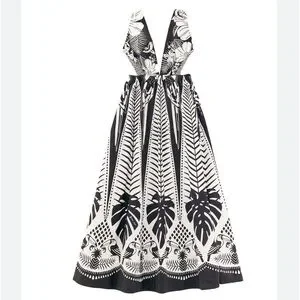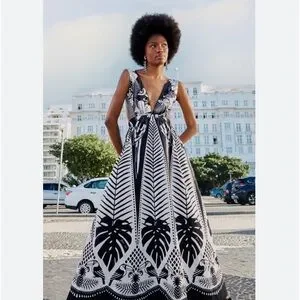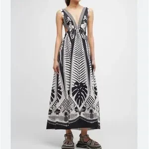 NWT Farm Rio: Anthropologie Farm Rio Macaw Elegance Black Cotton Maxi Dress