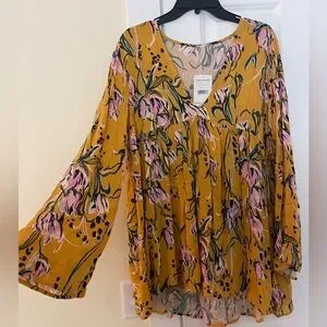 Free People Bella Golden Yellow Floral Print Tunic