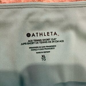 NWT Athleta Ace tennis skirt. Size XL. In beautiful teal blue color. High rise, 13.5” inseam. Stretchy material with the perfect amount of light compression. Has back zipper pockets and side pockets on inner shorts. Shorts have elastic to keep from riding up as pictured. Perfect for summer golf or tennis:)