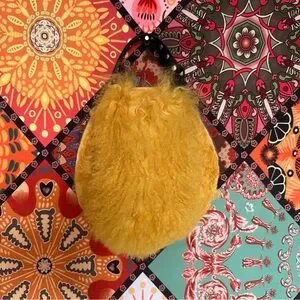 Rebellion Bags Yellow Tibetan Wool Wristlet Nail Studded Genuine Leather