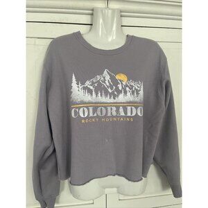 Hollister Colorado Rocky Mountains Cropped Sweatshirt Medium Raw Hem Cozy Soft