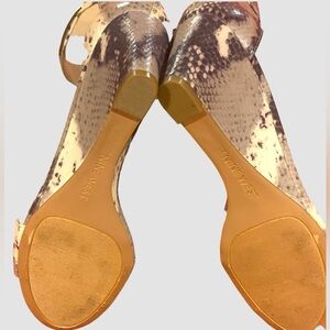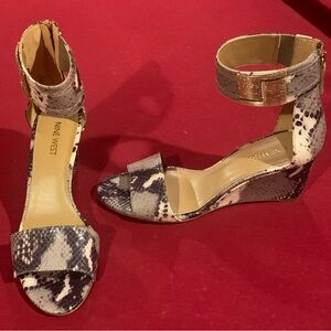 Nine West snake animal print cream gray sandal wedge heel sz 7.5
