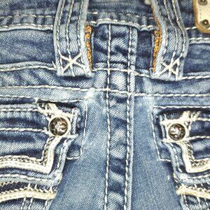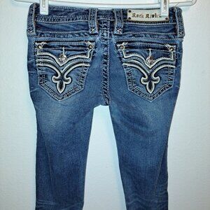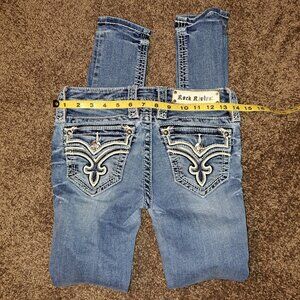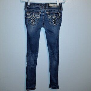 🪨 Rock Revival Allegra Skinny Jeans W/Leather Embroidered Flap Pockets size 25
