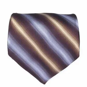 IKE BEHAR Men's 100% Silk Tie Hand Tailored Brown Purple Beige Striped Necktie