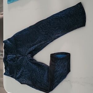 Lululemon Athletica Speed Running crops. Size 4, Blue, Black. Excellent LIKE NEW Preowned Condition. No rips, stains or piling. Just not wearing them anymore.