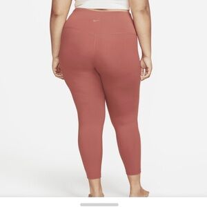 The Nike Yoga Dri-FIT plus size Leggings wrap you in the supportive comfort of stretchy fabric that feels soft against your skin. The high waist hugs your core to keep you confidently covered through every pose. They're mindfully made from at least 75% recycled polyester fibers. Confident Coverage: The high-rise waist keeps you covered during inversions and stretches. A slight "V" shape at the back highlights your natural lines for a confident look. Stay Dry, Stay Happy: Nike Dri-FIT technology moves sweat away from your skin for quicker evaporation, helping you stay dry and comfortable. Stretchy Comfort: Flexible fabric with a soft interior hugs your body to keep you comfortably supported and moving naturally from your first pose to "namaste."