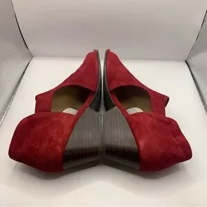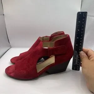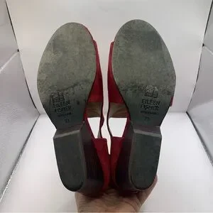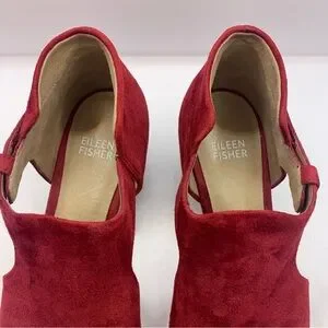 Eileen fisher open toe wedge sandals suede leather ankle strap red size 7.5M Red