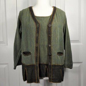 tribe ** ONE of a KIND Hand Woven Sleeveless Top w Matching Cardigan ** Size S