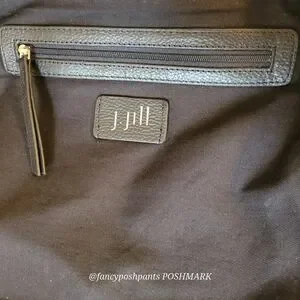 ❤J JILL real LEATHER trim 100% cotton plaid NWOTzipper, interior pocket tote bag