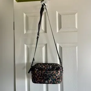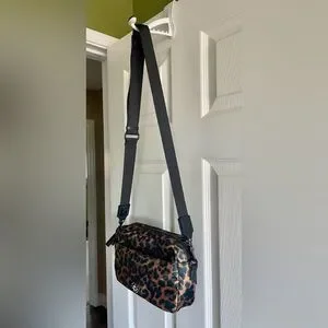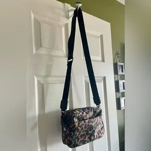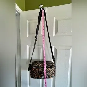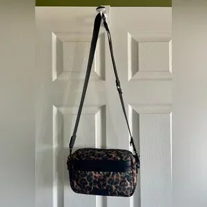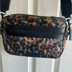 Kurt Geiger Camera Bag Crossbody Leopard Brown Quilted Nylon Shoulder Bag
