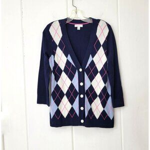 Charter Club Blue and Pink Argyle Cardigan