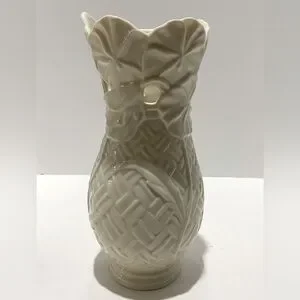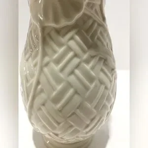Lenox Basket of Flowers Medium Pansy Vase with Basketweave Design Ivory 9" Retired