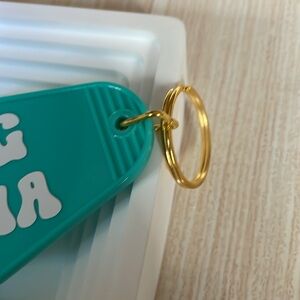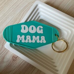 Dog Mama hotel style key chain with gold colored metal.
