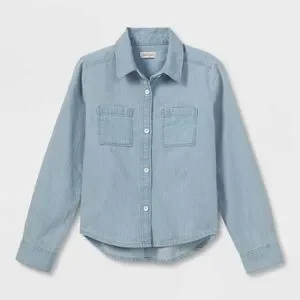Girls' Long Sleeve Woven Button-Down Shirt - Cat & Jack
