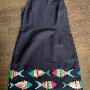 Talbots Dress size 10 Women A Line Tweed Sequins Multicolor Embroidered Fish