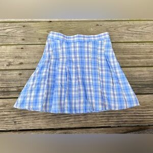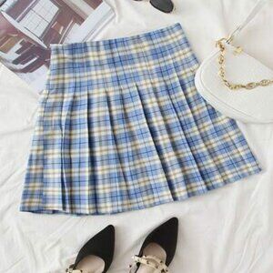 Light Blue & Yellow Plaid Pleated Skirt