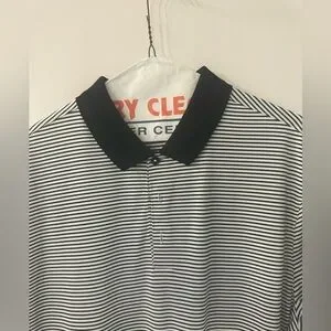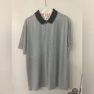 Nike Men Large Black/White Stripped Dri Fit Polo
