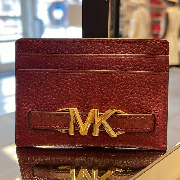 MICHAEL KORS Reed Large Pebbled Leather Card Holder Case Dark Cherry NWT