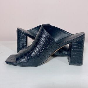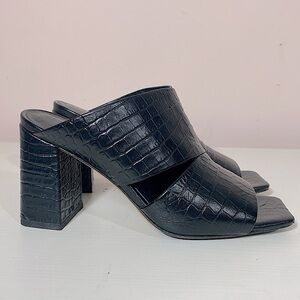 Mules Croc-effect leather Cutout Open square toe Block heel